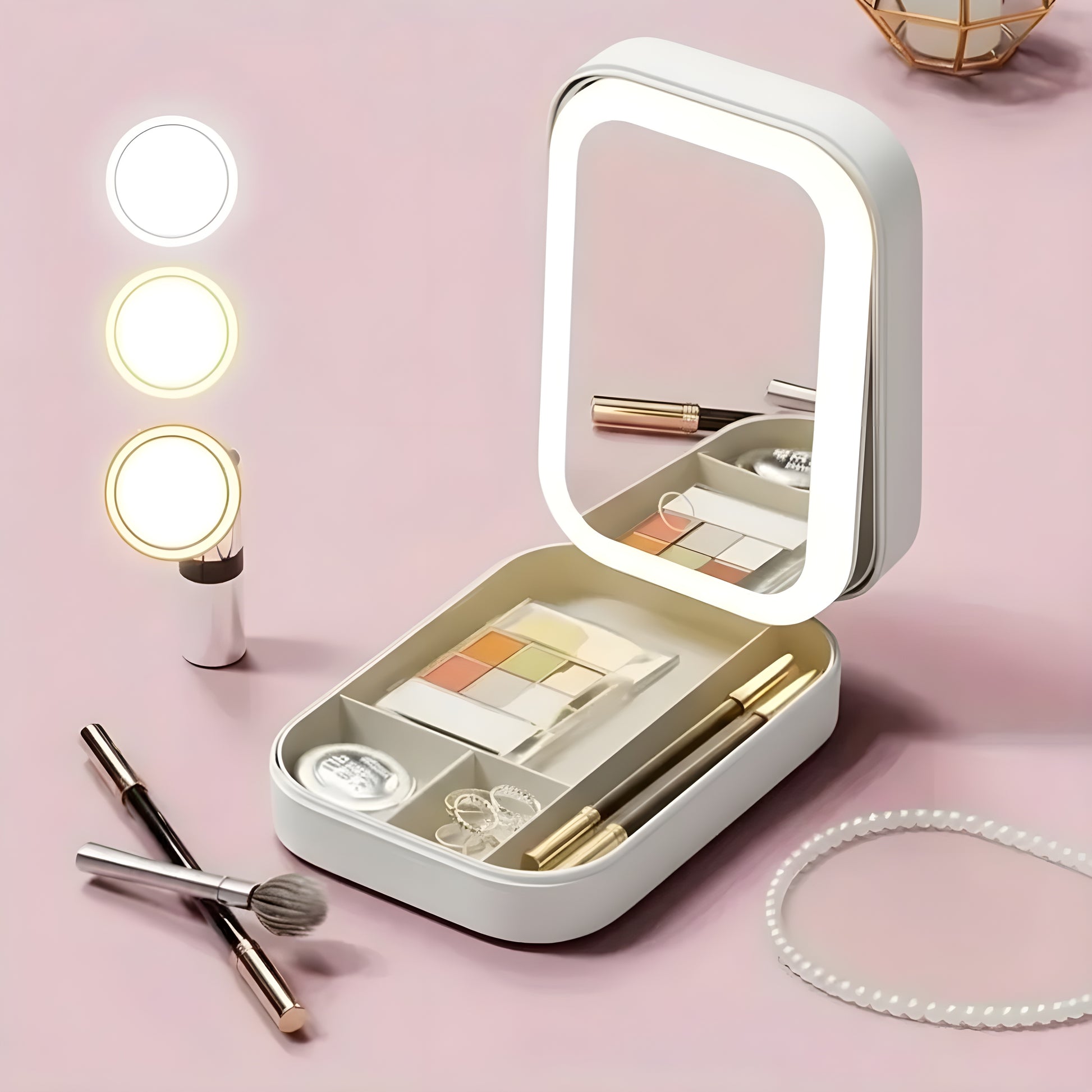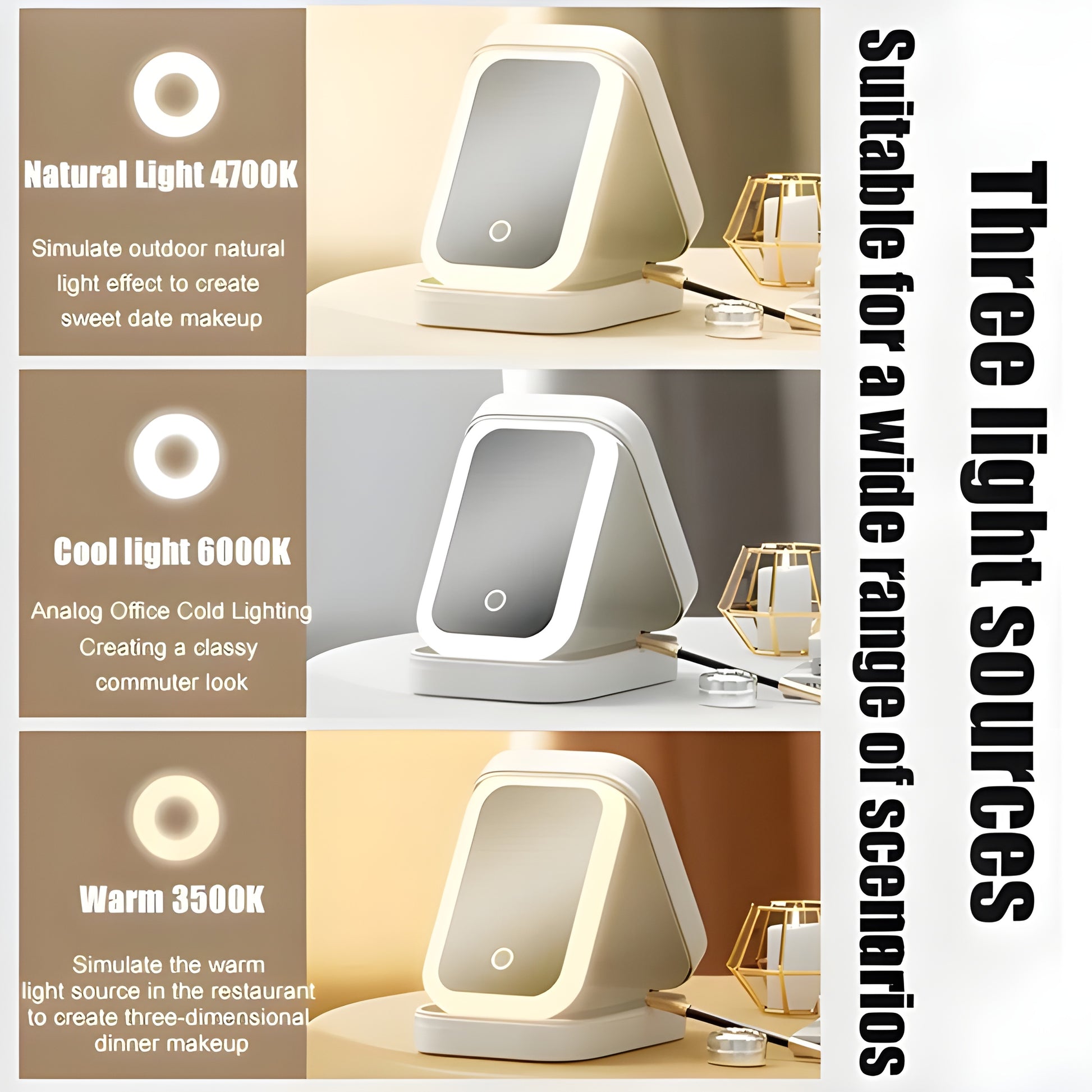 Adjustable, daylight-bright LED mirror delivers shadow-free clarity so your makeup looks true-to-tone in any room or time of day. Dial the brightness for precise brows, liner, and seamless blending.